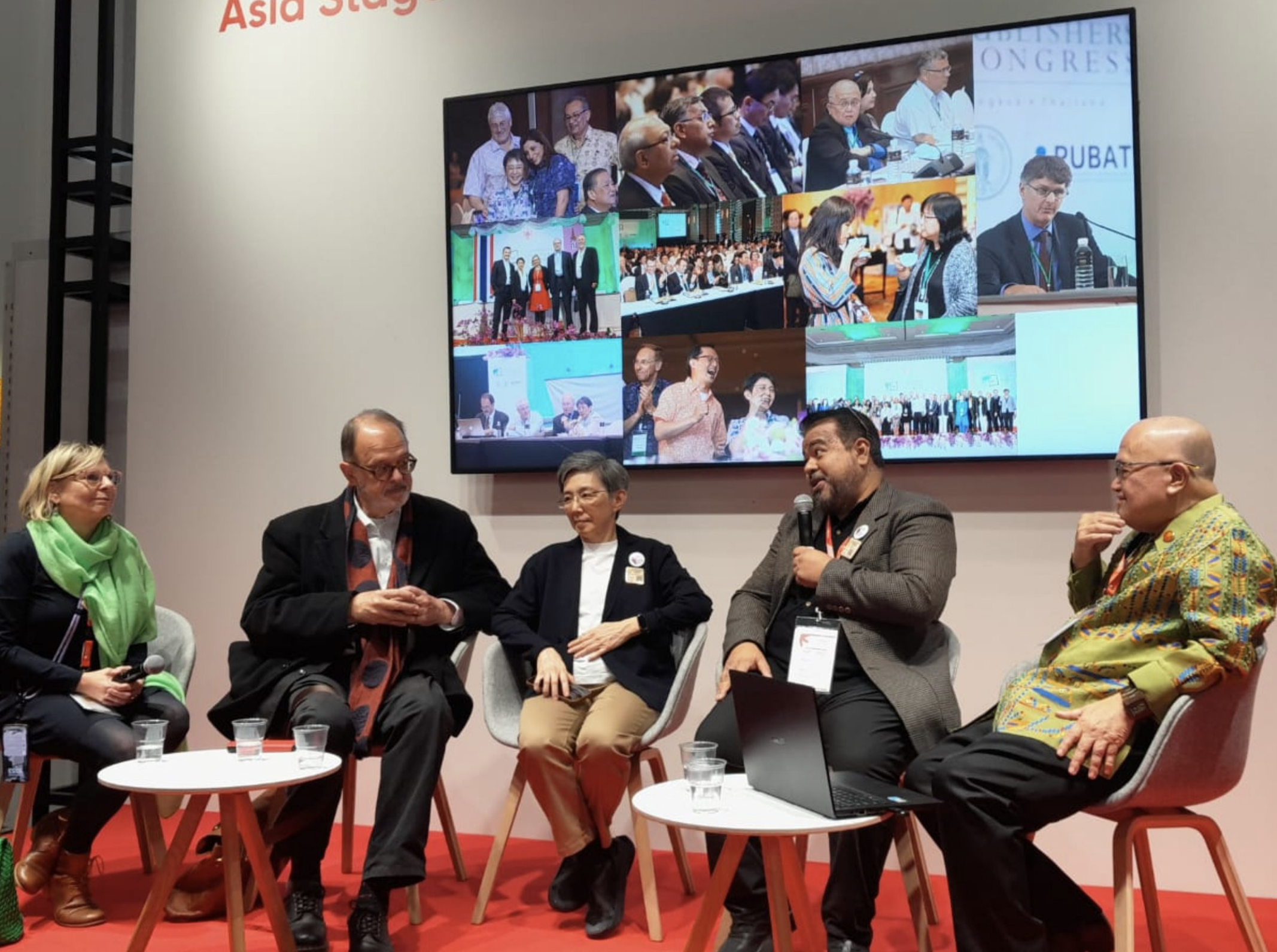في وقت سابق من الأسبوع، وتحديداً في 16 أكتوبر، تم تسليط الضوء على المؤتمر خلال جلسة على منصة آسيا في معرض فرانكفورت للكتاب، حيث شارك الأمين العام للاتحاد الدولي للناشرين، خوسيه بورغينو، في حلقة نقاش متميزة ضمّت كلاً من الشيخ فيصل (عضو اللجنة التنفيذية للاتحاد الدولي للناشرين)، وتراسفين جيتيديتشاراك (عضوة سابقة في اللجنة التنفيذية)، ودومينادور بوهين (الرئيس الفخري لجمعية ناشري التعليم في الفلبين).