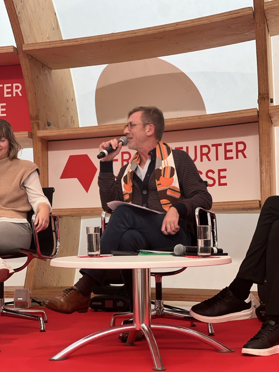 Next stop, the Pavilion where IPA worked with the Frankfurter Buchmesse to put together a session under the title Democracy Depends on Reading which looked at the trinity of freedoms – the freedom to read, the freedom to publish and the freedom of expression. Moderated by Publishing Perspectives’ Porter Anderson, the line-up included PRH’s Anke E. Steinecke, Jean Poderos of Editions Courtes et Longues, Felicia Hoffman of DTV Publishing and Ege DĂĽndar of PEN International. The session went into the practical detail of PRH’s work in the USA to push back against the book bans there, but also looked at the challenges faced in France with Poderos lamenting that with all of the issues our society’s face, that we should spend more time working together than admonishing each other. Felicia Hofmann, social media leader at German publisher DTV spoke about what she sees through her work and underlining the responsibility publishers have to publish different points of view and take people out of their bubbles. Ege DĂĽndar made an impassioned plea for the youth to be given more opportunities fight against the shrinking space for freedom of expression. He noted that, while our differences matter, young people realise we need to work together but need support to create these spaces. He was also able to share the news that PEN international had created a young writers committee and a Tomorrow Club.