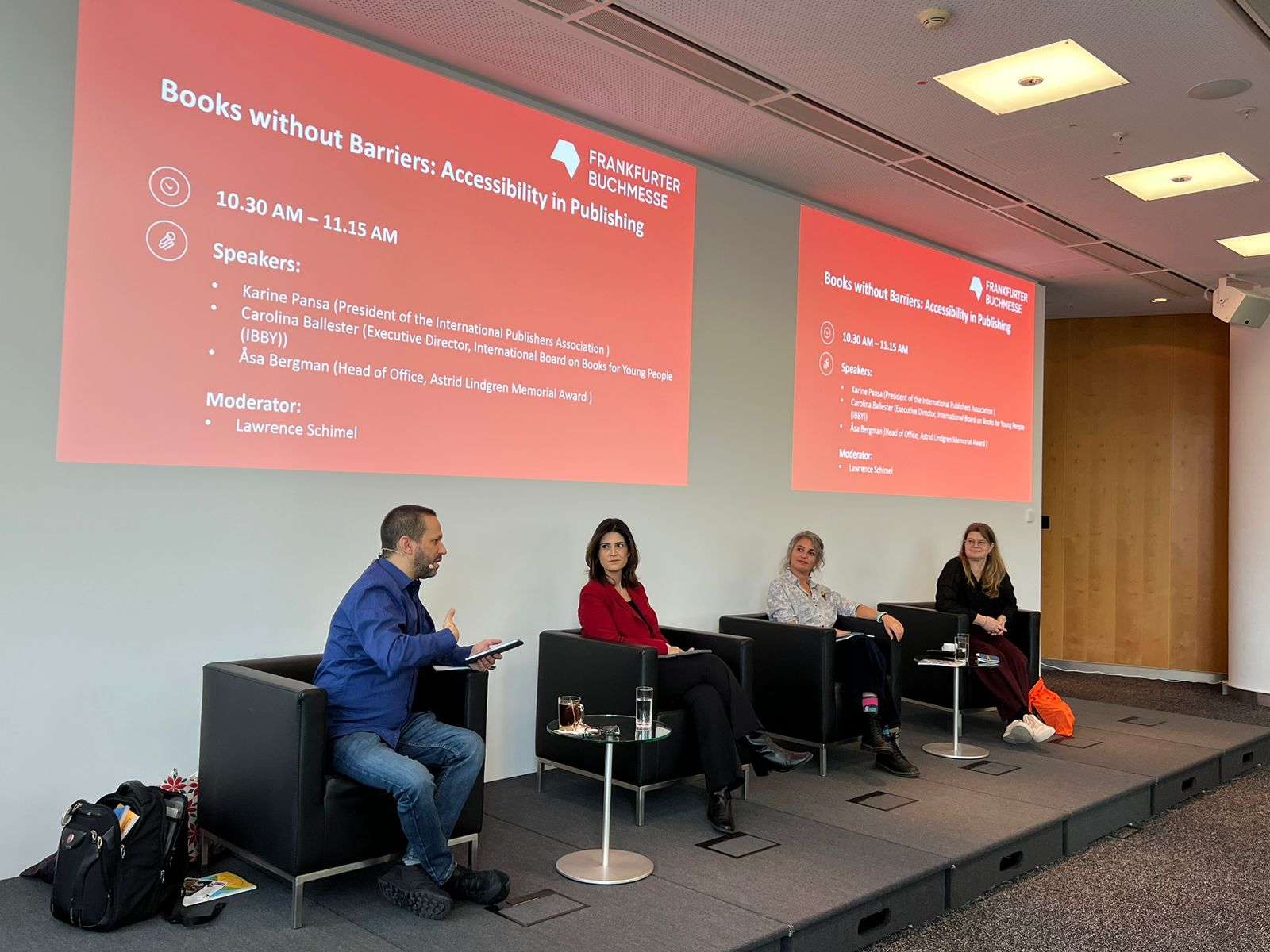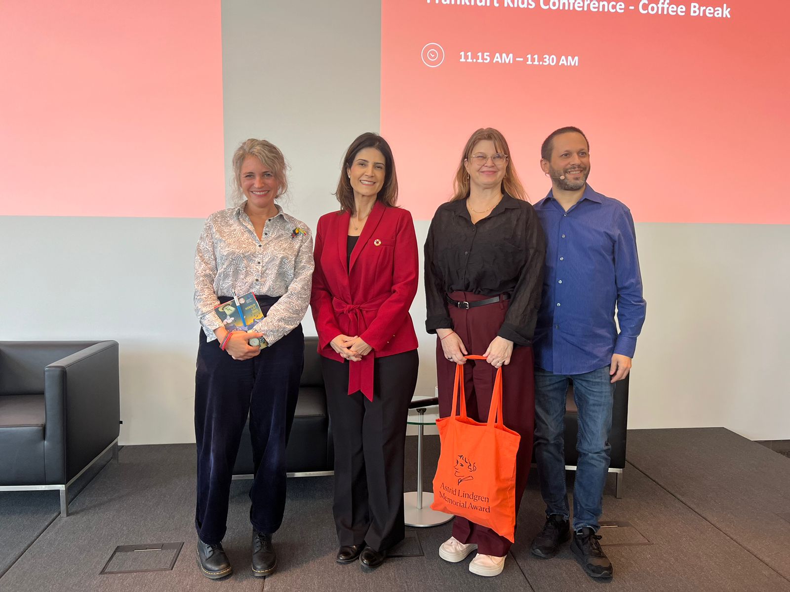 While that was happening, IPA President Karine Pansa was a speaker at the new Kids Conference, in a session called Books without Barriers: Accessibility in Publishing moderated by author Lawrence Schimel speaking alongside Ă…sa Bergman (ALMA), Carolina Ballester (IBBY). Pansa spoke about IPA’s work on the Sustainable Development Goals, the freedom to publish and copyright.