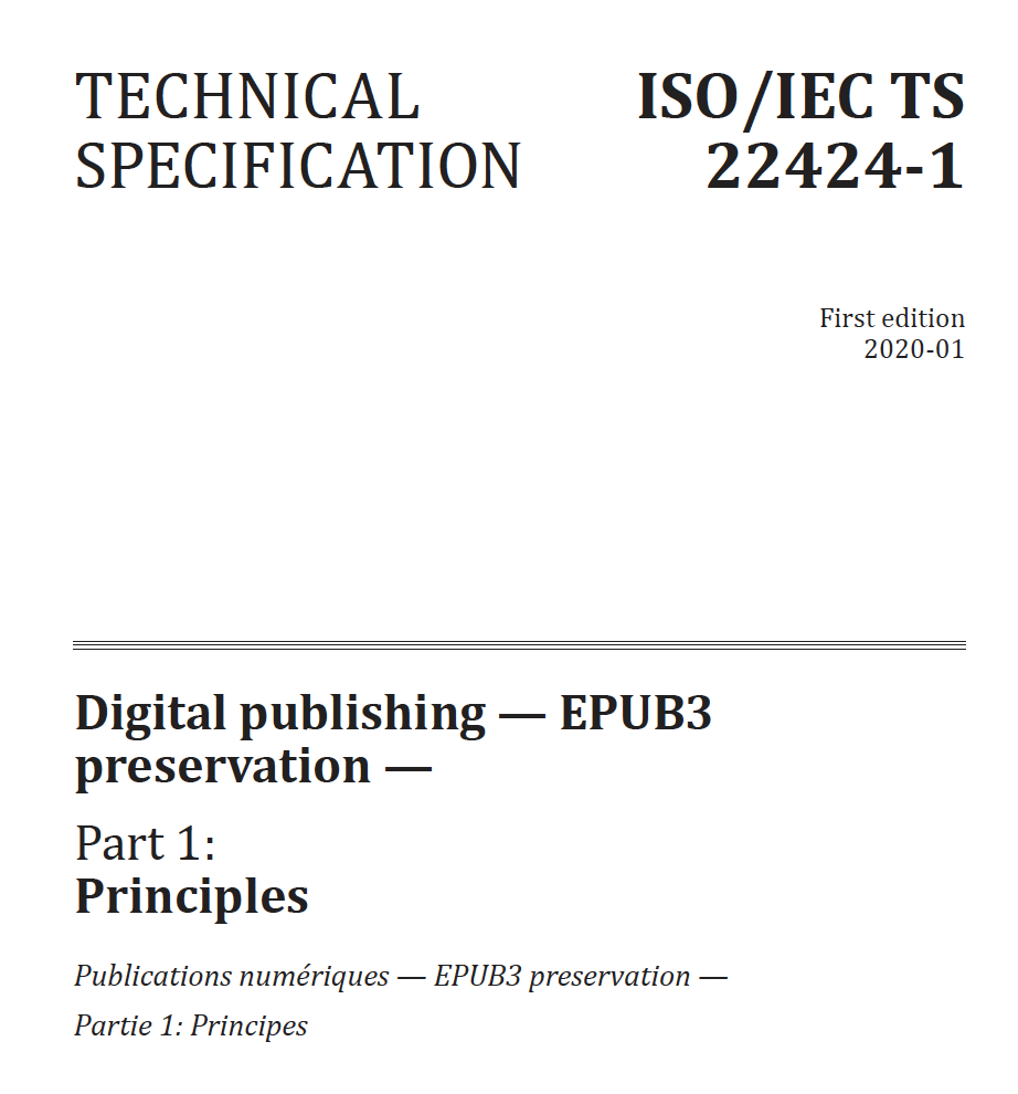 EPUB is widely deployed in book publishing and if the archival version of this is also standardized, it has the potential to become widely used to preserve human knowledge and culture. Work is now underway by ISO to define the archiving standard for EPUB 3 files.